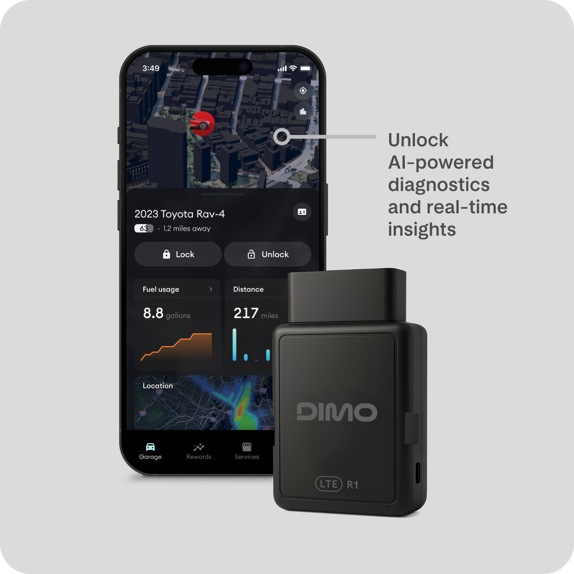 Meet the DIMO LTE R1. Plug it in to unlock AI-powered diagnostics, real-time driving insights, and smart alerts. Track every trip with always-on cellular LTE connectivity. Works with almost any car 2008 or newer.